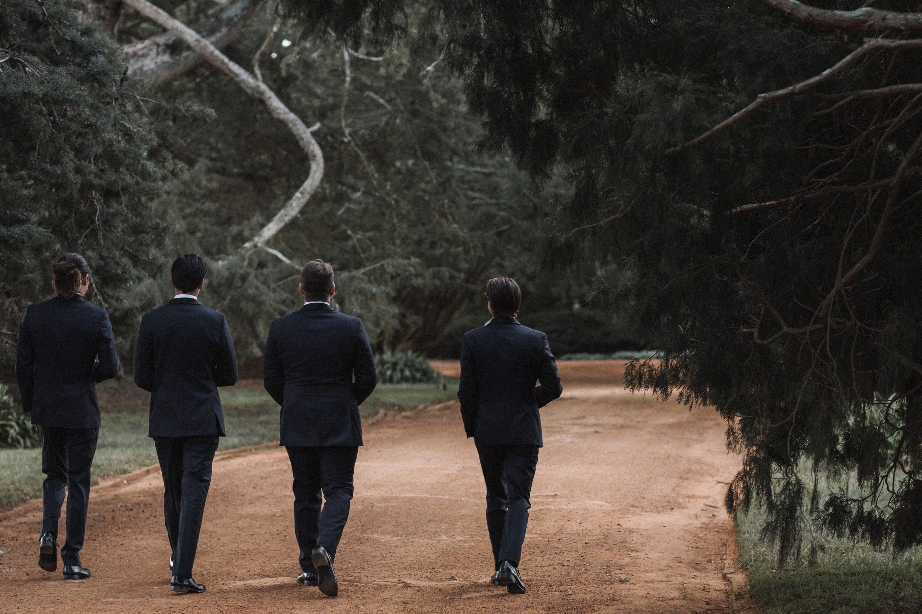 Cameron and his groomsmen were, of course, dressed by Peppers. The boys chose to wear our luxurious midnight blue OXFORD tuxedo. Beautifully fitted and simple this modern take on the classic tux was worn with a slim fit white french cuff shirt and satin ties.