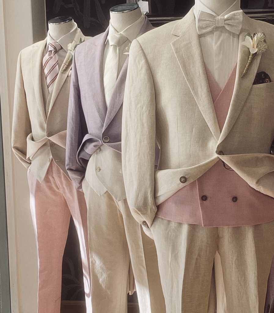 We hire the classic natural linen but can also access a varying range of pastels – 2 piece suit from $595.00