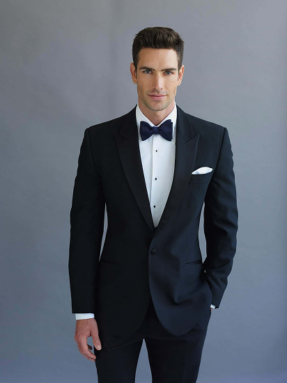 Designed for evening occasions that call for distinction. Choose from traditional tuxedos or modern dinner jackets, all tailored for sharp lines, elegant drape, and timeless style. Complete the look with a crisp white shirt and silk bow tie.